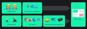 - Инструменты разработки — редакторы кода или графики, системы управления контентом (CMS), расширения для тестирования и др.