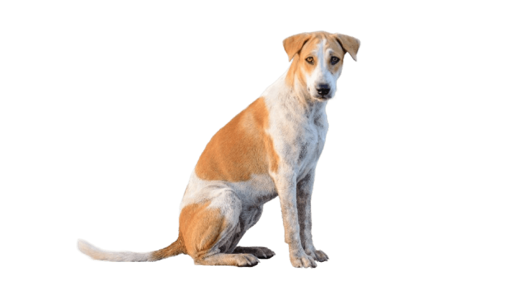 На картинке пример со щенком венгерской борзой с двухцветным окрасом — белым и светло-коричневым. Верхняя часть головы с ушами, часть спины и задние лапы собаки коричневые, а всё остальное тело белое.